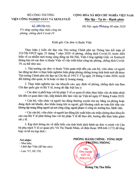 Thông báo về việc tăng cường thực hiện công tác phòng, chống dịch Covid-19