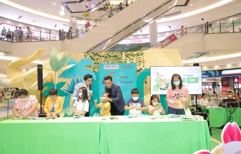 Tetra Pak cũng đặt các gian hàng với chủ đề tái chế vỏ hộp giấy trong khoảng thời gian từ 27.5 - 5.6 để khách hàng đến tham quan và trải nghiệm tại 5 trung tâm thương mại Aeon Mall tại Hà Nội, TP.HCM và Bình Dương.